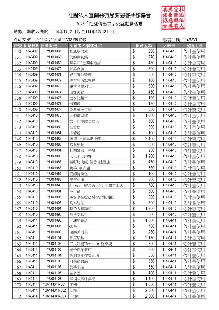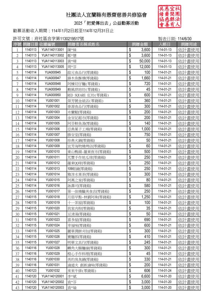 114年捐款芳名錄(1-6月)